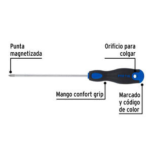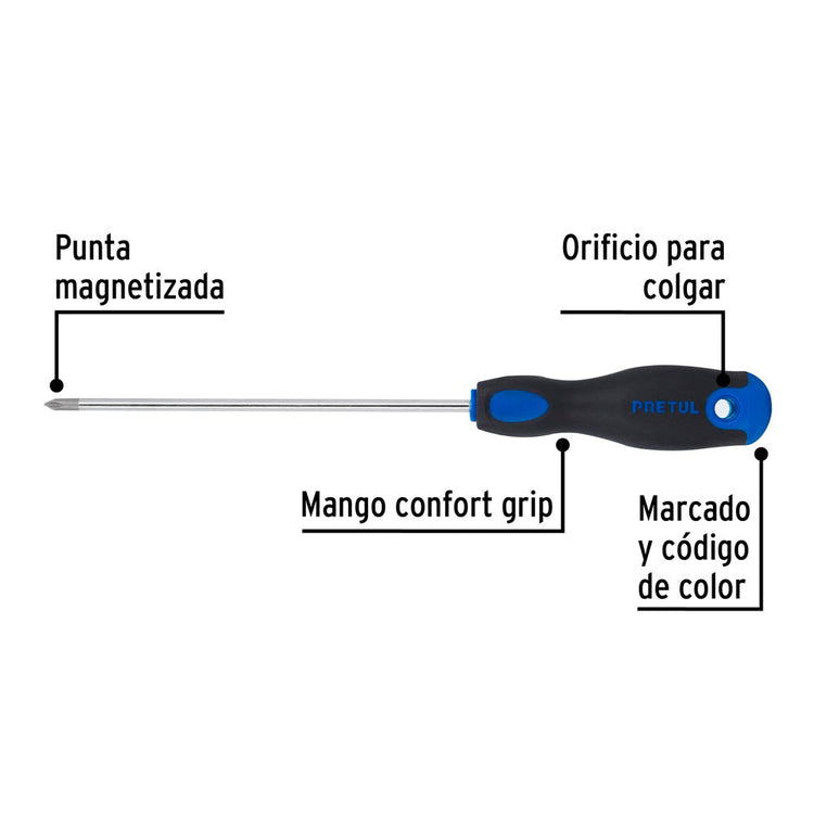 Desarmador Pretul 3/16" x 6" Mango Comfort Grip Punta de Cruz