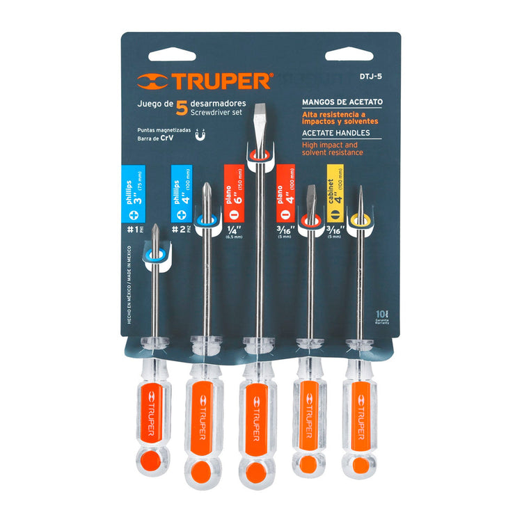 Desarmadores Truper Juego de 5 Piezas con Mangos de Acetato