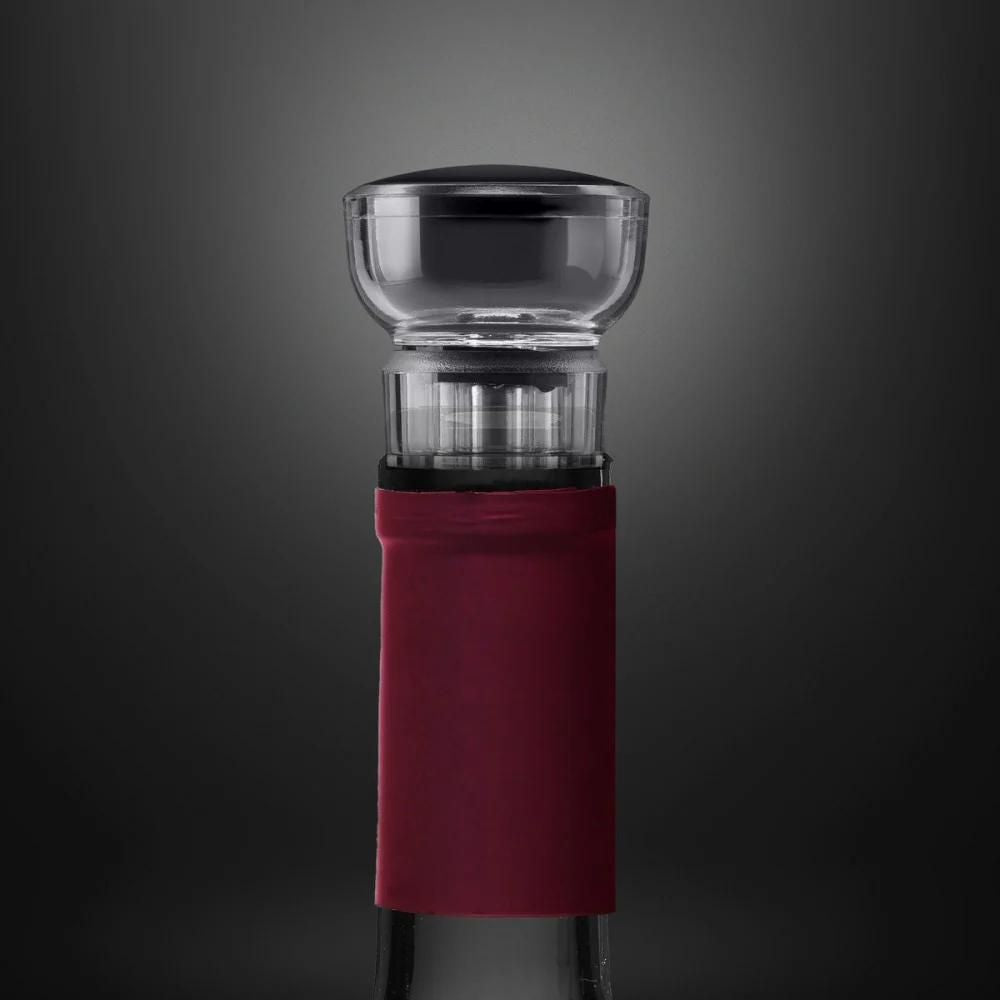 ¡las abre en menos de 10 segundos! Este set de fácil funcionamiento incluye, además del abridor eléctrico con luz LED, un decantador de servicio antigoteo, para que no caiga una sola gota fuera y un tapón sellador para poder volver a cerrar la botella. Funciona sin cable y cuenta con cortador manual para la cápsula (etiqueta protectora del vino). Con una sola carga podrás abrir más de 50 botellas. Es perfecto para regalar.