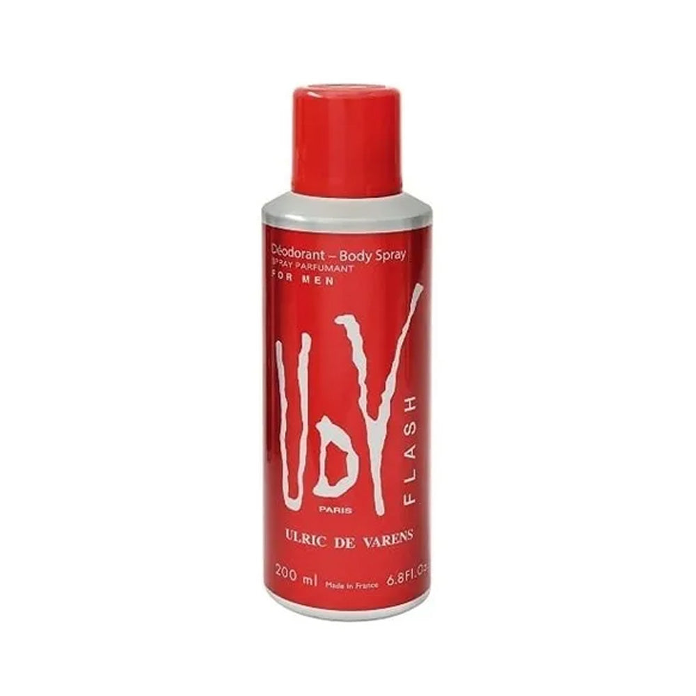 UDV Flash Deodorant-Body Spray es un producto de cuidado personal de la marca Ulric de Varens, diseñado para proporcionar frescura y protección durante todo el día. Un producto que combina la función de un deodorante con la frescura de un spray corporal, proporcionando una sensación de frescura y confianza durante todo el día