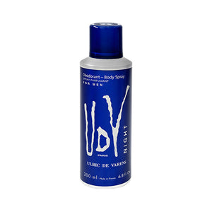 UDV Night Deodorant-Body Spray es un producto de cuidado personal de la marca Ulric de Varens, diseñado para proporcionar frescura y protección durante todo el día y la noche. Un producto que combina la función de un deodorante con la frescura de un spray corporal, proporcionando una sensación de frescura y confianza durante todo el día y la noche