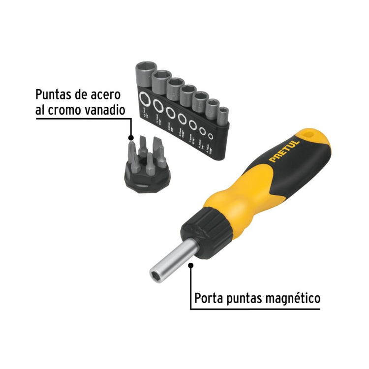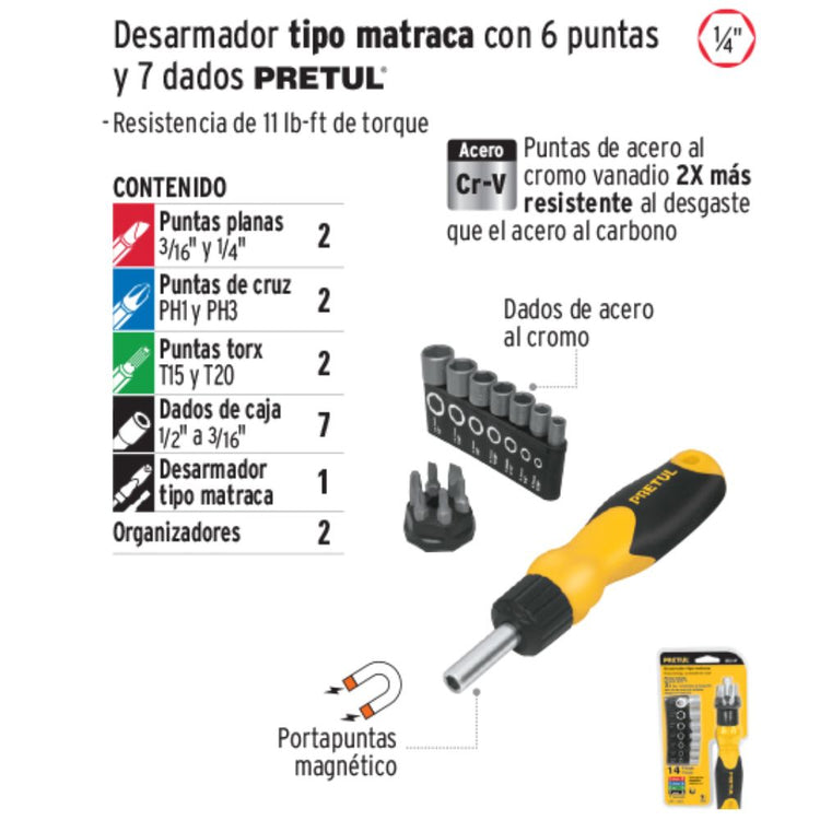 Este versátil destornillador es una herramienta imprescindible en cualquier caja de herramientas. Con su diseño ergonómico y mango antideslizante, proporciona un agarre cómodo y seguro para trabajos prolongados.