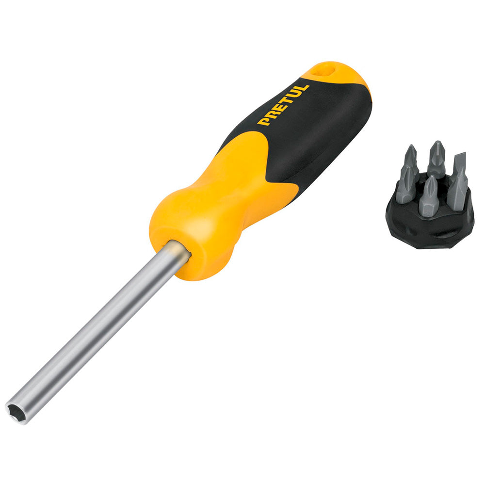 Este destornillador ofrece un diseño robusto y ergonómico que garantiza un agarre cómodo y seguro durante el uso prolongado.