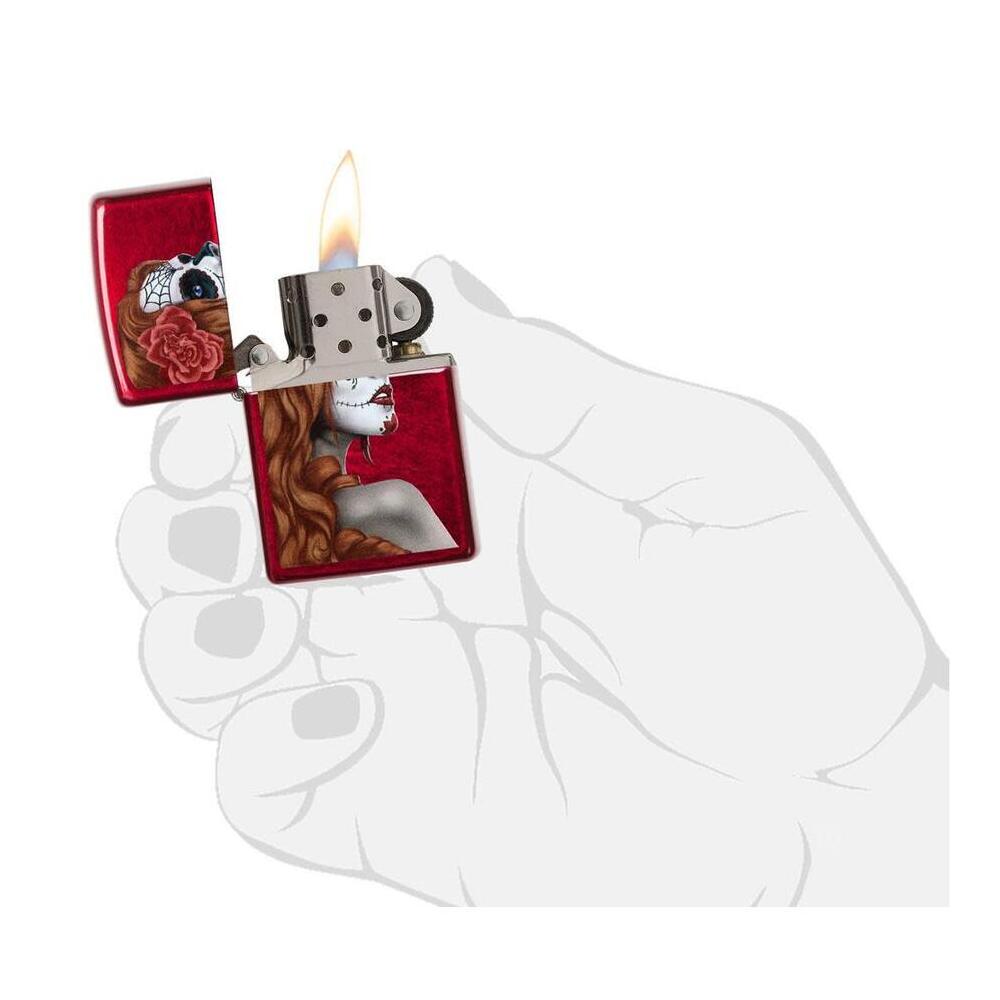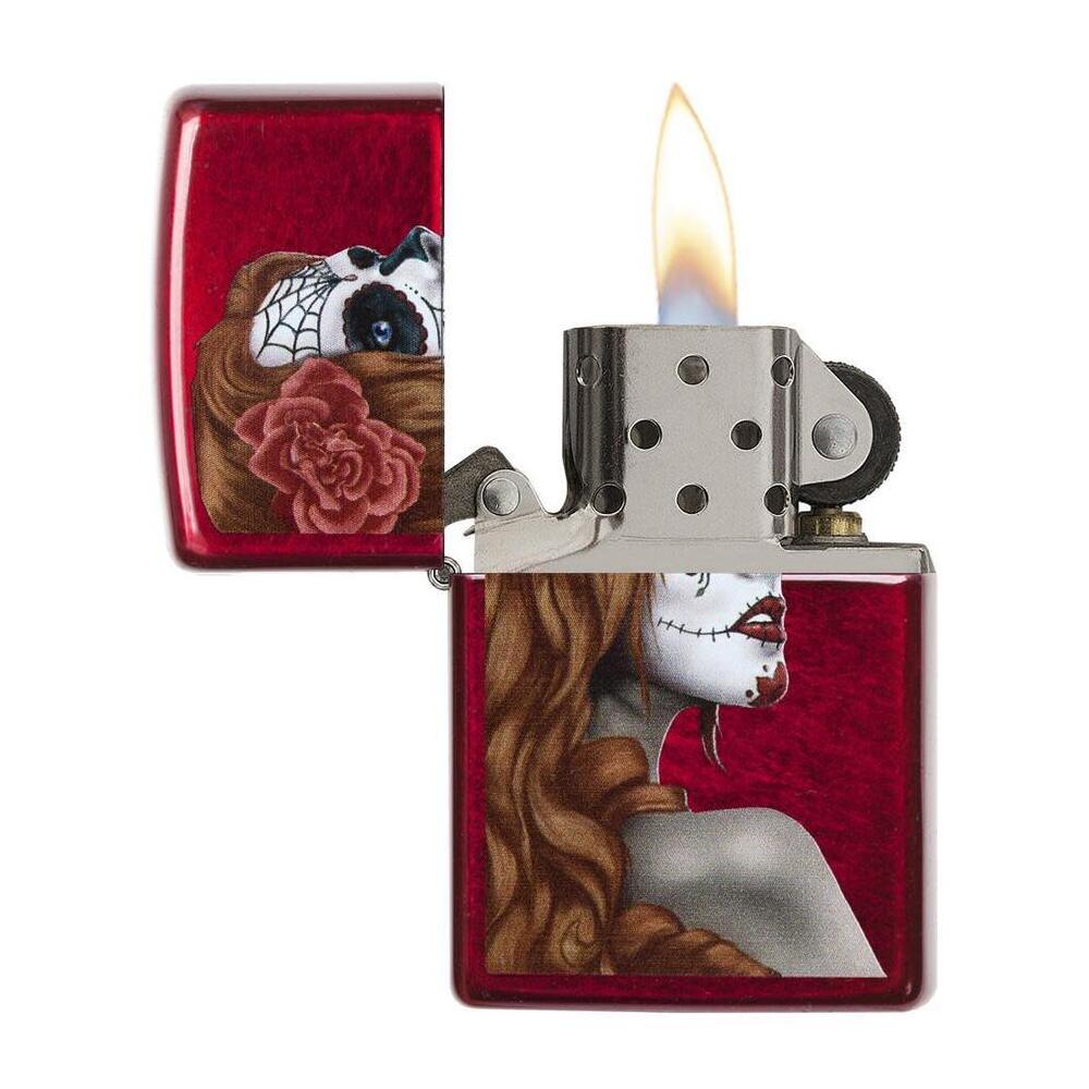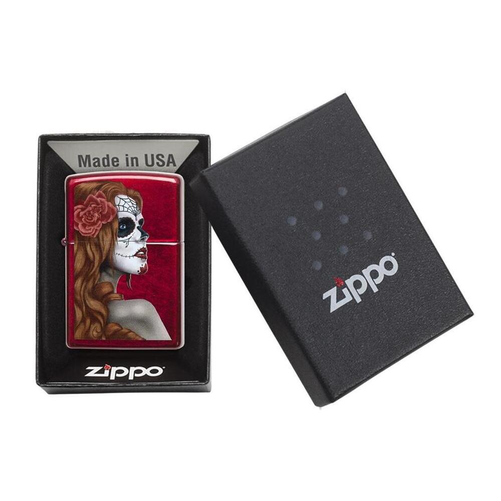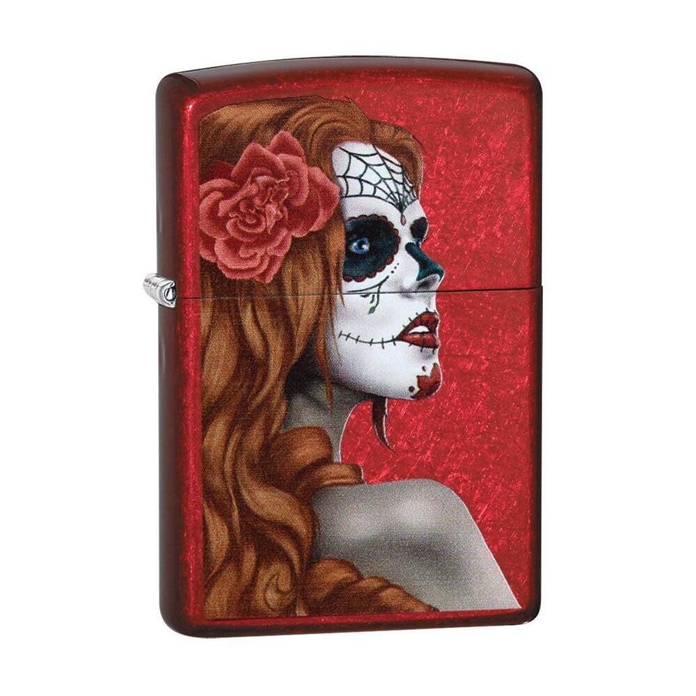 Además, tiene la garantía de por vida de Zippo, no lo dudes más y consigue este encendedor único y original. Inspirada en la celebración mexicana del Día de Muertos, esta base Candy Apple Red presenta a una niña con una rosa en el cabello. Viene empaquetado en una caja de regalo. Para un rendimiento óptimo, llénelo con combustible para encendedor Zippo.