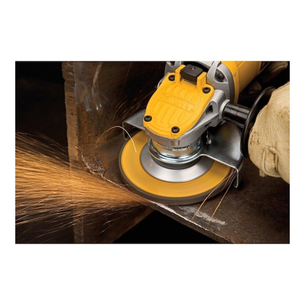 La Esmeriladora Angular DWE4120 de 4 1/2" (115mm) cuenta con un motor potente y compacto de 900W desarrollado para aplicaciones diversas de corte y desbaste. Su caja de engranajes de bajo perfil permite trabajar en espacios reducidos. Gracias a su mango auxiliar de dos posiciones y su gatillo tipo paleta, permite un mayor control y comodidad al usuario.
