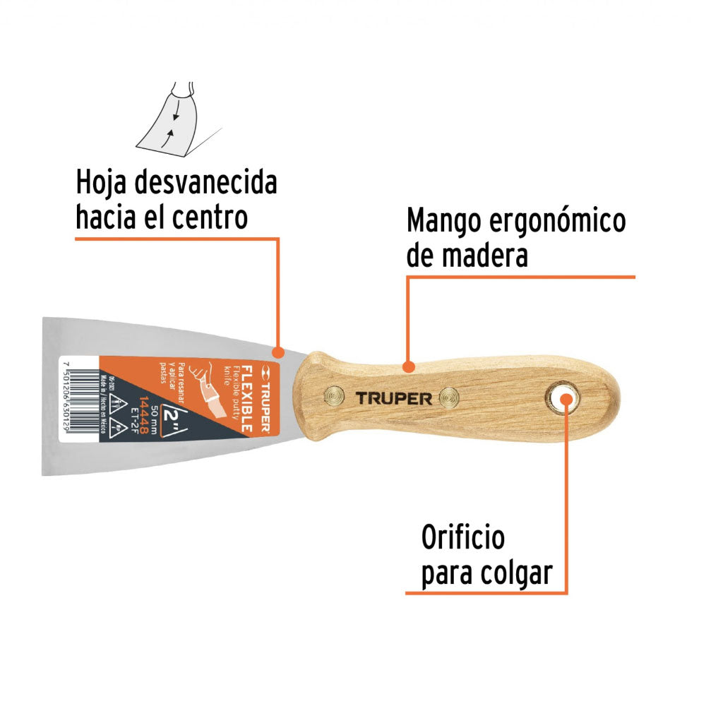 La espátula flexible de 2" mango de madera es una excelente opción para los profesionales y aficionados que quieren realizar trabajos de calidad y durabilidad.