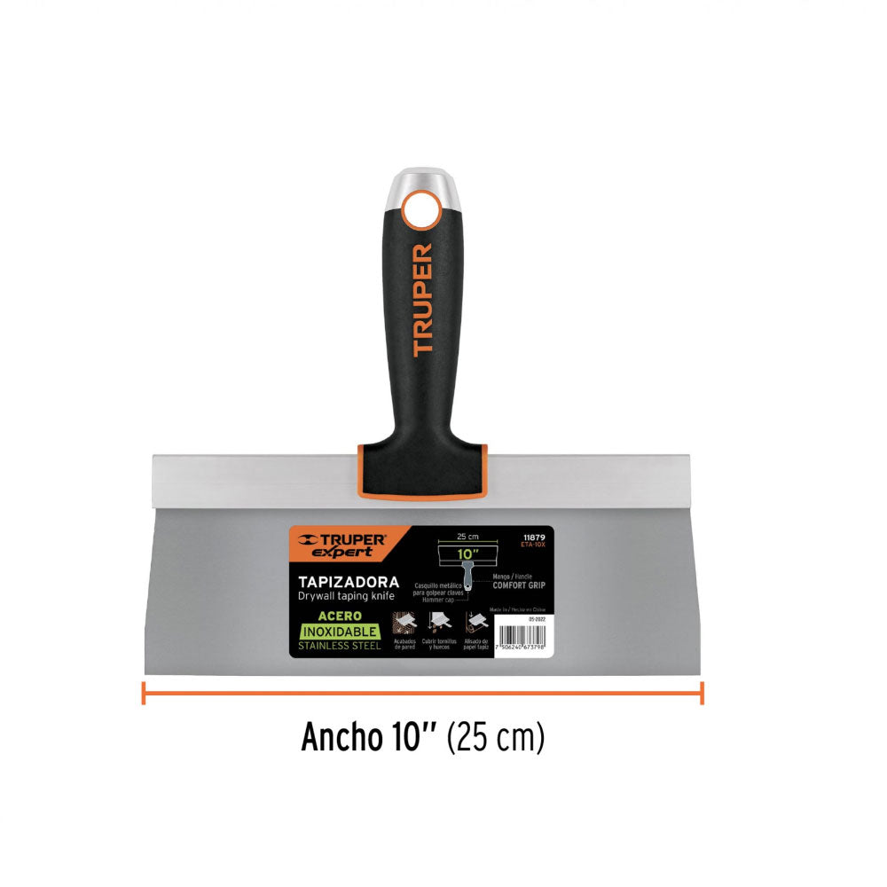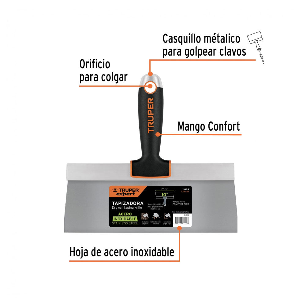 Es una herramienta de alta calidad y resistencia, diseñada para facilitar el trabajo de tapicería y acabados de pared. Su hoja flexible de acero inoxidable le permite adaptarse a diferentes superficies y materiales, mientras que su mango ergonómico de plástico le brinda un agarre cómodo y seguro.