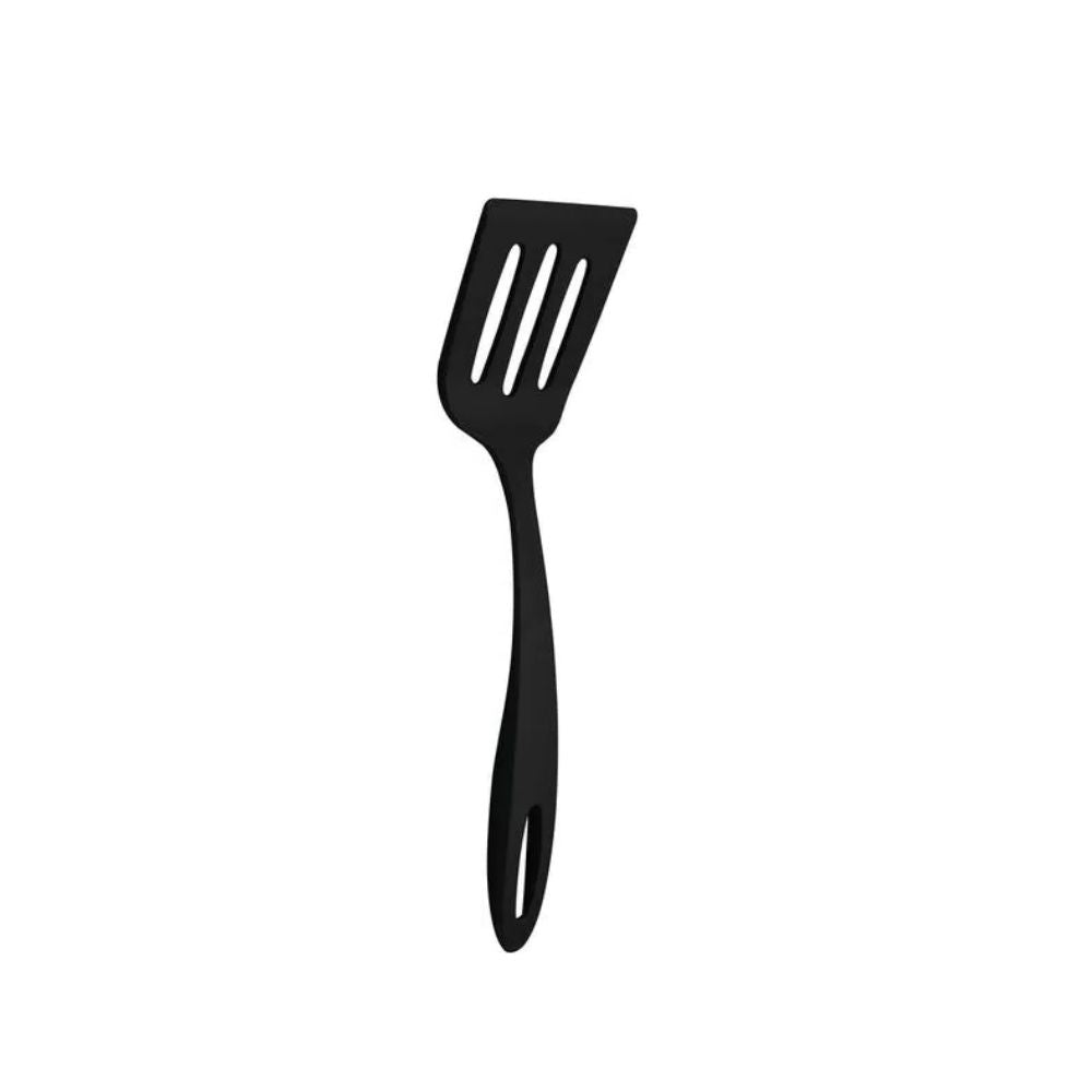 Espátula de Nylon que puede utilizarse a temperaturas de hasta 180 °C. Mango con orificio pasador que permite colgarla en su cocina.Utensilio ideal para uso en ollas con revestimientos antiadherentes y cerámicos, porque no daña los productos. Se puede llevar al lavavajillas facilitando tu día a día.