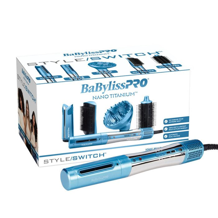 BaBylissPRO Style/Switch Ionic Multi-Styler & Dryer BNTSS-5PK es una herramienta profesional todo en uno diseñada para lograr resultados de salón en casa. Su avanzada tecnología iónica y su diseño ergonómico permiten un peinado eficiente y versátil con un solo dispositivo.