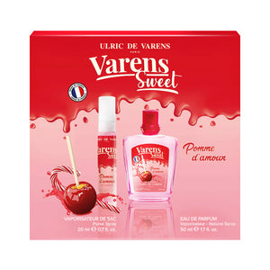 El estuche Varens Sweet Pomme d'Amour es un conjunto práctico y elegante que incluye un perfume y un vaporizador de bolsillo. El perfume es ideal para uso diario, mientras que el vaporizador de bolsillo es perfecto para retocar la fragancia a lo largo del día.