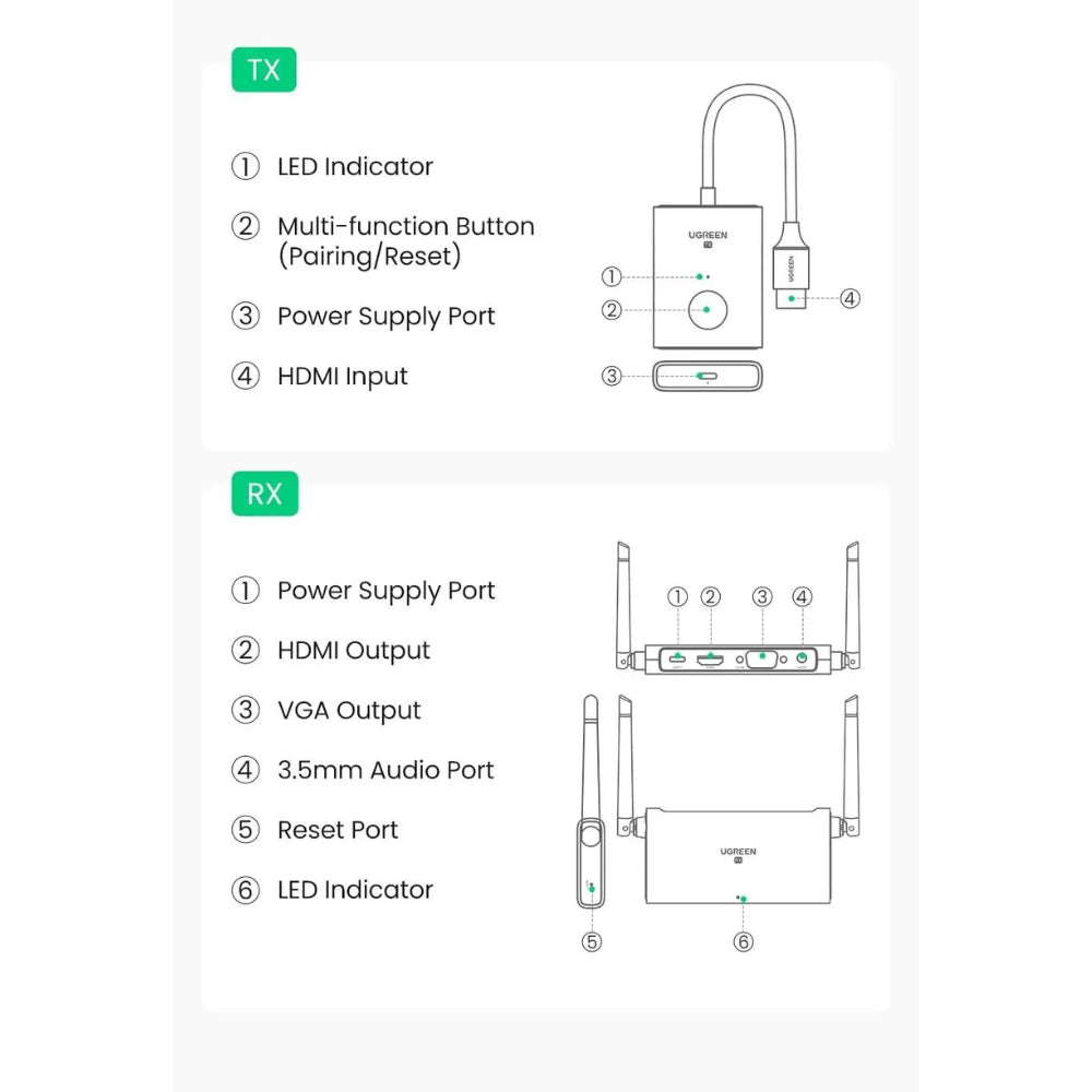 Extensor HDMI Ugreen Inalambrico de 50M con Transmisor y Receptor de Video 5GHz Soporta 1080P a 60Hz Puerto USB-C 50633A