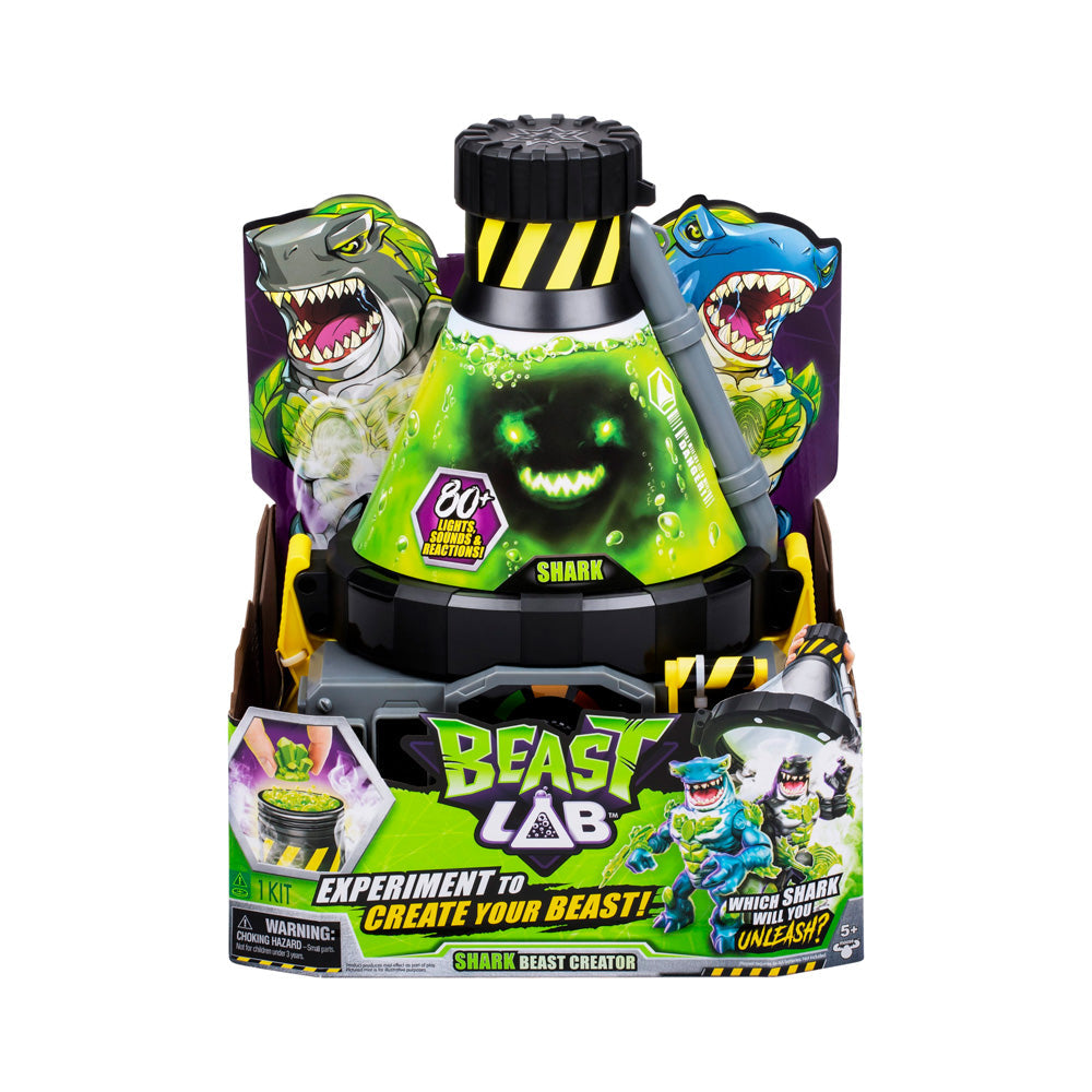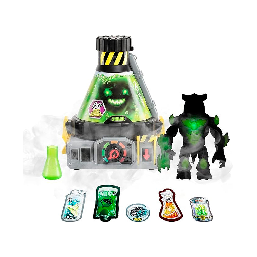 A medida que avanza cada paso del experimento, la intensidad aumenta. ¡Tire hacia abajo la palanca de emergencia para drenar el líquido y revelar su bestia dentro ! El mundo está en peligro y la única manera de salvarlo es crear una bestia! ¡Realiza un experimento usando el Creador de Bestias para crear uno de los dos tiburones! Añade ingredientes y sigue los pasos del experimento para crear tu bestia. Mira cómo la Cámara Creadora de Tiburón Bestia libera Bio Mist real y aumenta la presión. Tira hacia abajo de la palanca de emergencia para drenar el líquido y revelar la bestia en el interior.