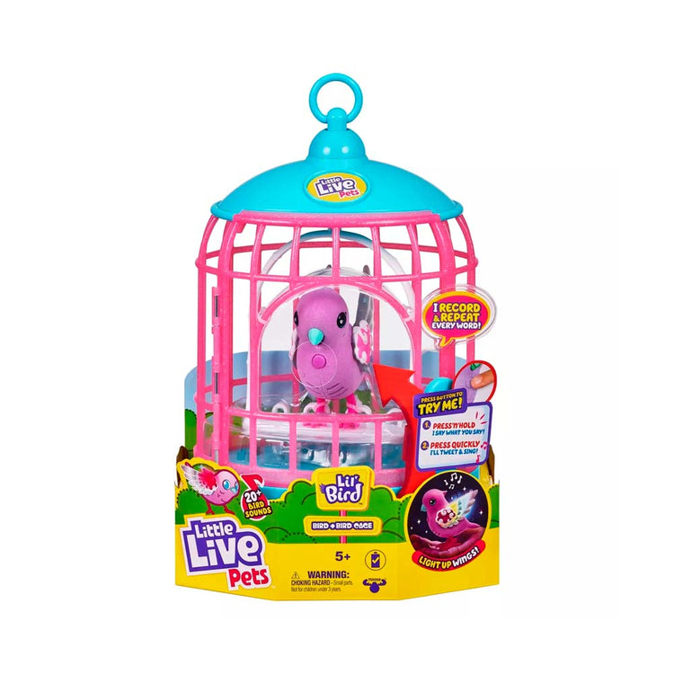 Little Live Pets: ¡Los Lil' Birds son los pájaros más dulces que jamás hayas conocido! Estos adorables pajaritos con grandes ojos hermosos y alas mágicas iluminadas cobran vida en tus manos mientras los acaricias e interactúas con ellos. ¡Realmente reaccionan a tu toque! ¡Cuanto más acaricies, más feliz se pondrá tu Lil' Bird! ¡Chirriarán y twittearán durante más tiempo y eventualmente te silbarán una melodía!