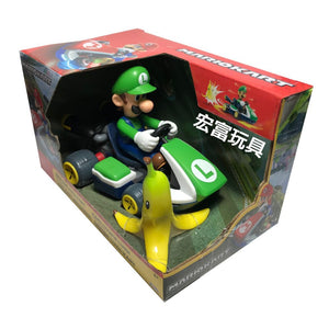 Los gatillos delanteros y traseros activan la función de giro: ¡360 giros! Incluye accesorio Mario kart y cáscara de plátano.