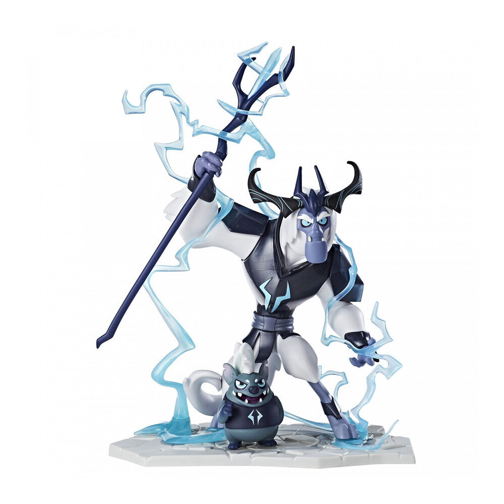 Con la Figura de Accion Rey Tormenta de My Little Pony, puedes recrear las aventuras de la película y enfrentarte a las heroínas de Equestria. Esta figura de 15 cm tiene un diseño detallado y articulado, inspirado en el personaje de la película. Además, incluye un accesorio de su Cetro de Sacanas, que se ilumina y hace sonidos al presionar un botón. La Figura de Accion Rey Tormenta de My Little Pony es un juego de acción y fantasía, recomendado para niños de 4 años o más, que requiere 3 pilas alcalinas LR44 (incluidas). ¡No dejes pasar esta oportunidad de tener al conquistador de las tierras más allá de Equestria!