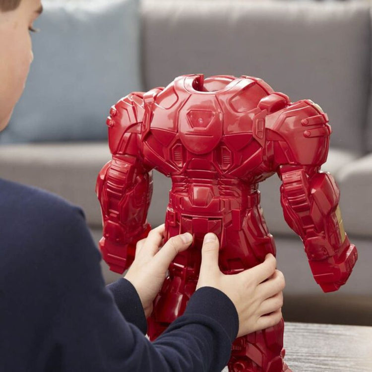 ¡Imagina a Hulk creciendo en fura y fuerza con la figura Hulkbuster Furia de Hulk, la cual cuenta con luces, sonidos y frases! Cuando la figura de Hulk está dentro de la armadura Hulkbuster, presiona el botón central para activar frases y efectos de sonido de Hulkbuster. Luego, surge de la armadura Hulkbuster al presionar los botones en la parte trasera de la figura para desarmar por completo la armadura. Tras sacar a Hulk de la armadura, ¡junta las piezas de la armadura de nuevo para armar una figura de Hulkbuster de 34 cm!. Presiona el botón central de la figura de Hulk para más frases y sonidos de Hulk ¡Y presiona los botones en la espalda de la figura para aplastar con los puños!