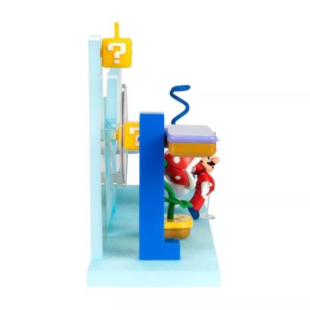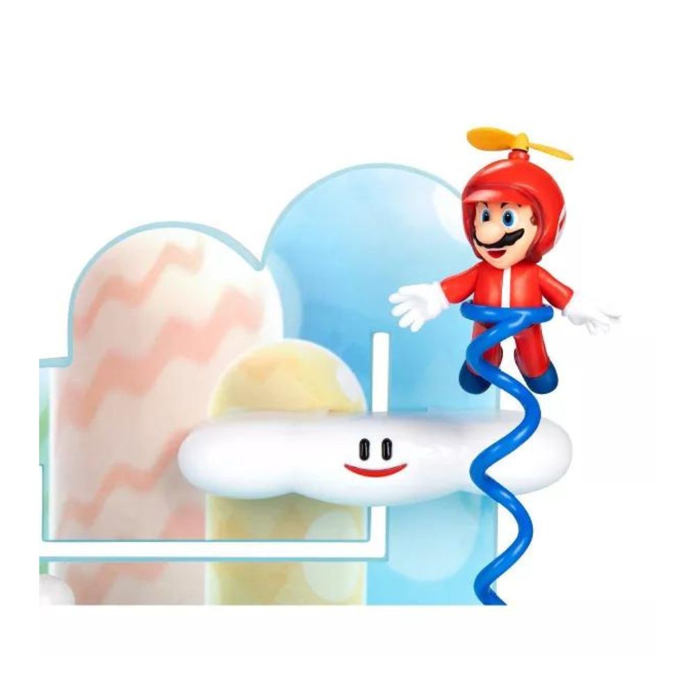 Crea tus propias aventuras con la figura Propeller Mario de dos pulgadas y media incluida y guíalo a través de los numerosos obstáculos.