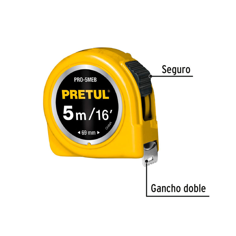 Flexómetro Pretul Amarillo 5 m Cinta 19 mm en Tarjeta