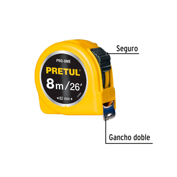 Flexómetro Pretul Amarillo 8 m Cinta 25 mm en Tarjeta