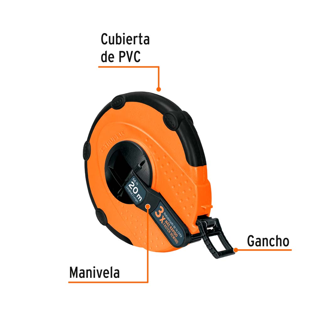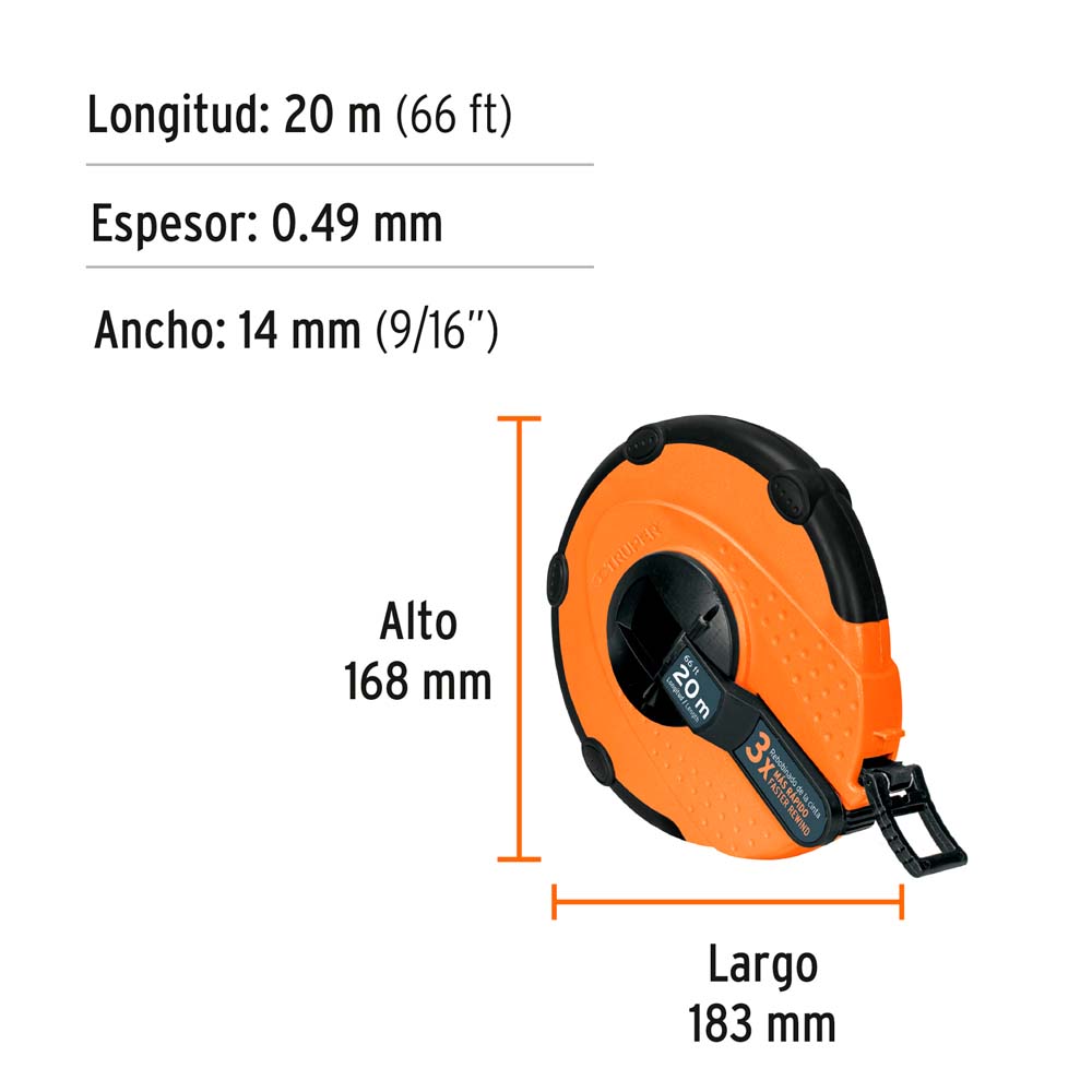 Este flexómetro de Truper, es una herramienta versátil y robusta para medir con precisión distancias de hasta 20 metros. Fabricada con materiales de alta calidad para garantizar una larga vida útil. Está cubierta de PVC anti-impacto.