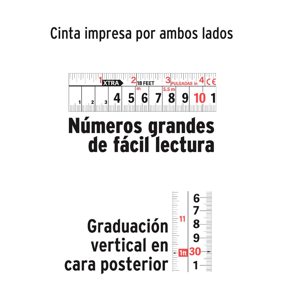 - Cinta extra ancha que permite mayor extensión, impresa por ambos lados, recubierta de laca para máxima duración de la graduación