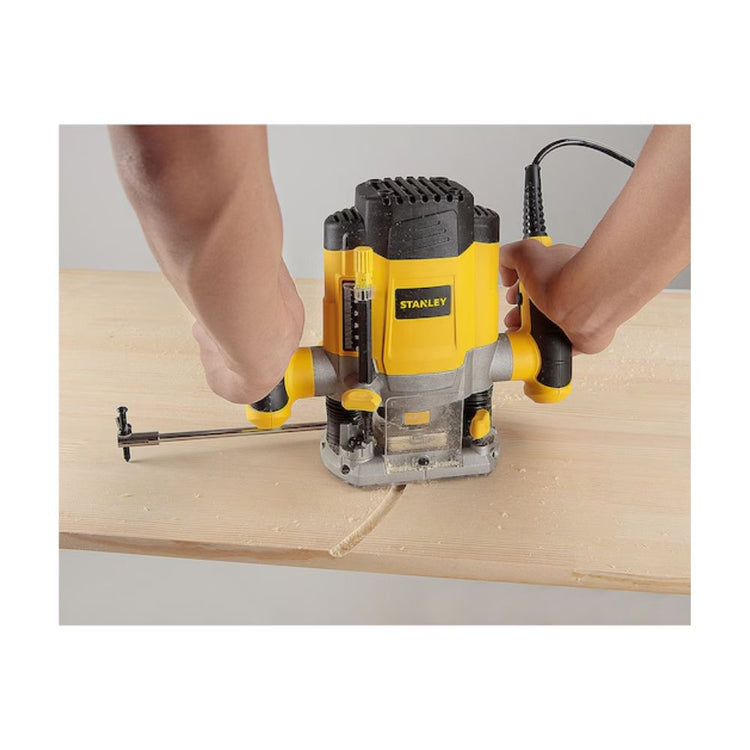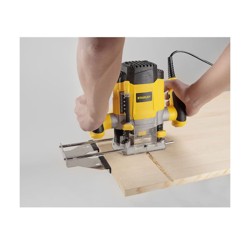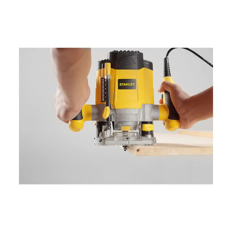 Potente motor para responder a las aplicaciones profesionales 3 topes de profundidad ajustables, para mayor rapidez en el ajuste cuando se usan cuchillas/fresas. Interruptor en el mango con bloqueo para funcionamiento continuo, agarre anti-deslizante mayor comodidad, seguridad y precisión durante el control de profundidad con sistema de micro-ajuste.