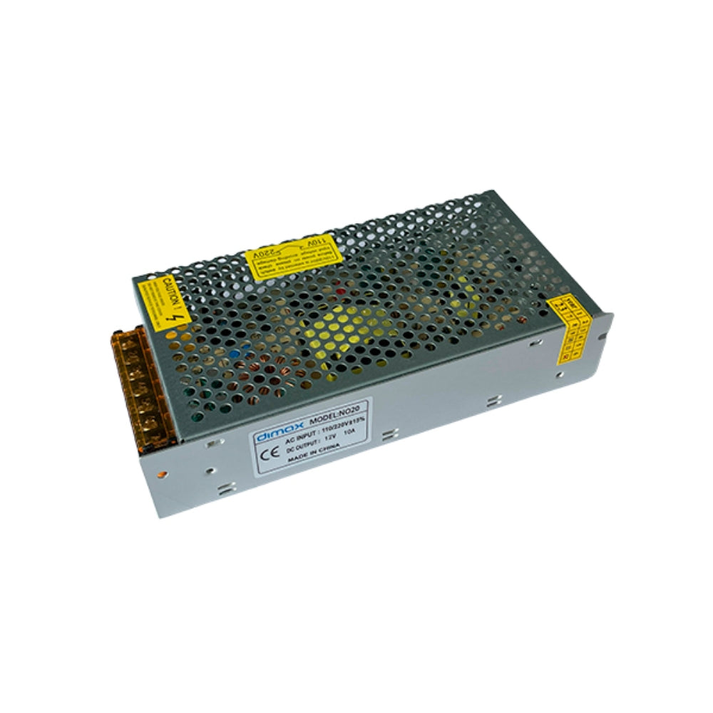Fuente de Poder Dimax Tipo Rejilla Salida 12Vdc 10Amp Bornera de Conexion General Soporta Camara Chapa y Control de Acceso N020