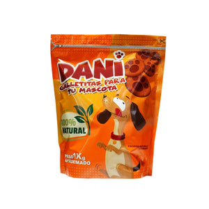 Premia a tu mascota con lo mejor. Sorprende a tu perrito con un premio delicioso y saludable. DANI elabora galletitas con ingredientes 100% naturales, frescos y ricos en proteínas de origen animal, combinados con cereales libres de gluten. Son perfectas para cualquier raza, ya que están diseñadas pensando en el bienestar y la nutrición de tu peludo, respaldado con los registros sanitarios necesarios.