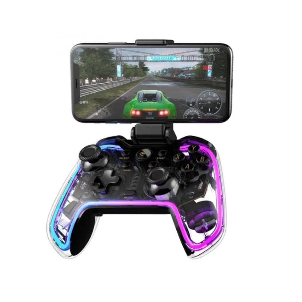 Este controlador de juegos inalámbrico combina un diseño moderno y transparente con funcionalidad avanzada. Compatible con una amplia gama de dispositivos, desde Android e iOS hasta PS3, PS4, Switch, y PC a través de Steam. Su malla RGB y tres modos de iluminación crean una atmósfera de juego exclusiva, mientras que su batería de 800mAh ofrece hasta 10 horas de juego ininterrumpido. Con un diseño ergonómico y controles sensibles, incluyendo programación de teclas y modos turbo, este controlador proporciona una experiencia de juego inmersiva y personalizable. Conectividad Bluetooth sencilla y compatibilidad con una variedad de programas hacen que sea la elección ideal para cualquier jugador.Especificaciones