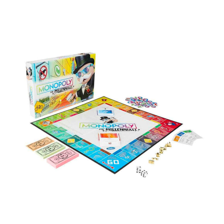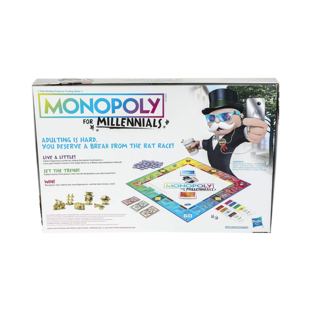 Este juego de Monopoly es una gran opción para los milenios que necesitan un descanso de la vida adulta; ideal para fiestas y reuniones. Elige los lugares y destinos interesantes: Colecciona puntos de experiencia visitando los más calurosos Destinos, desde el sofá de tu amigo, hasta el vegano Bistro, hasta un retiro de meditación de una semana de duración. En esta versión del juego Monopoly, el jugador que recoge la más experiencia -- no la mayor cantidad de dinero -- gana el juego.