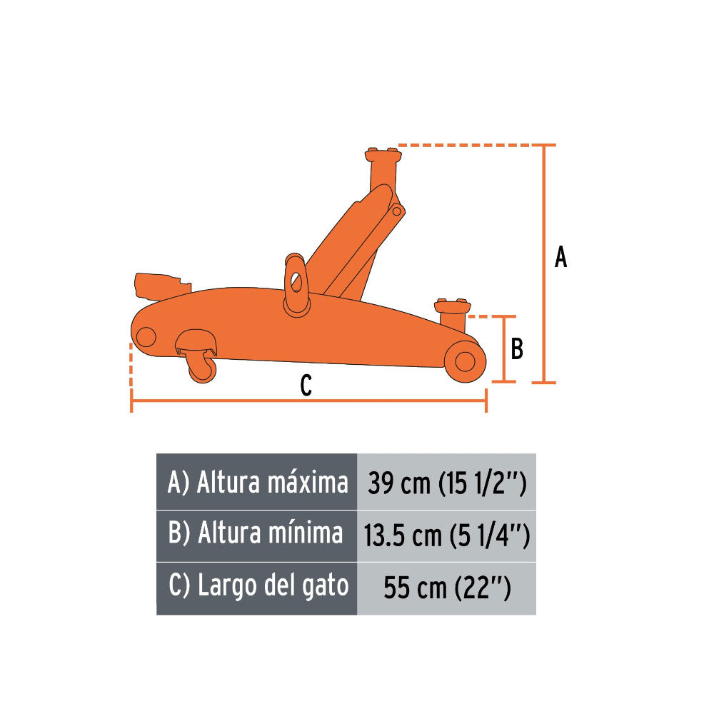 Gato de Patín Truper de 2.5 Ton de Elevación Rápida