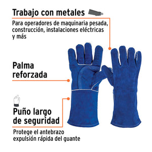 Estos guantes ofrecen un excelente desempeño y protección contra chispas y salpicaduras al soldar. Están cosidos con hilo kevlar para mayor duración
