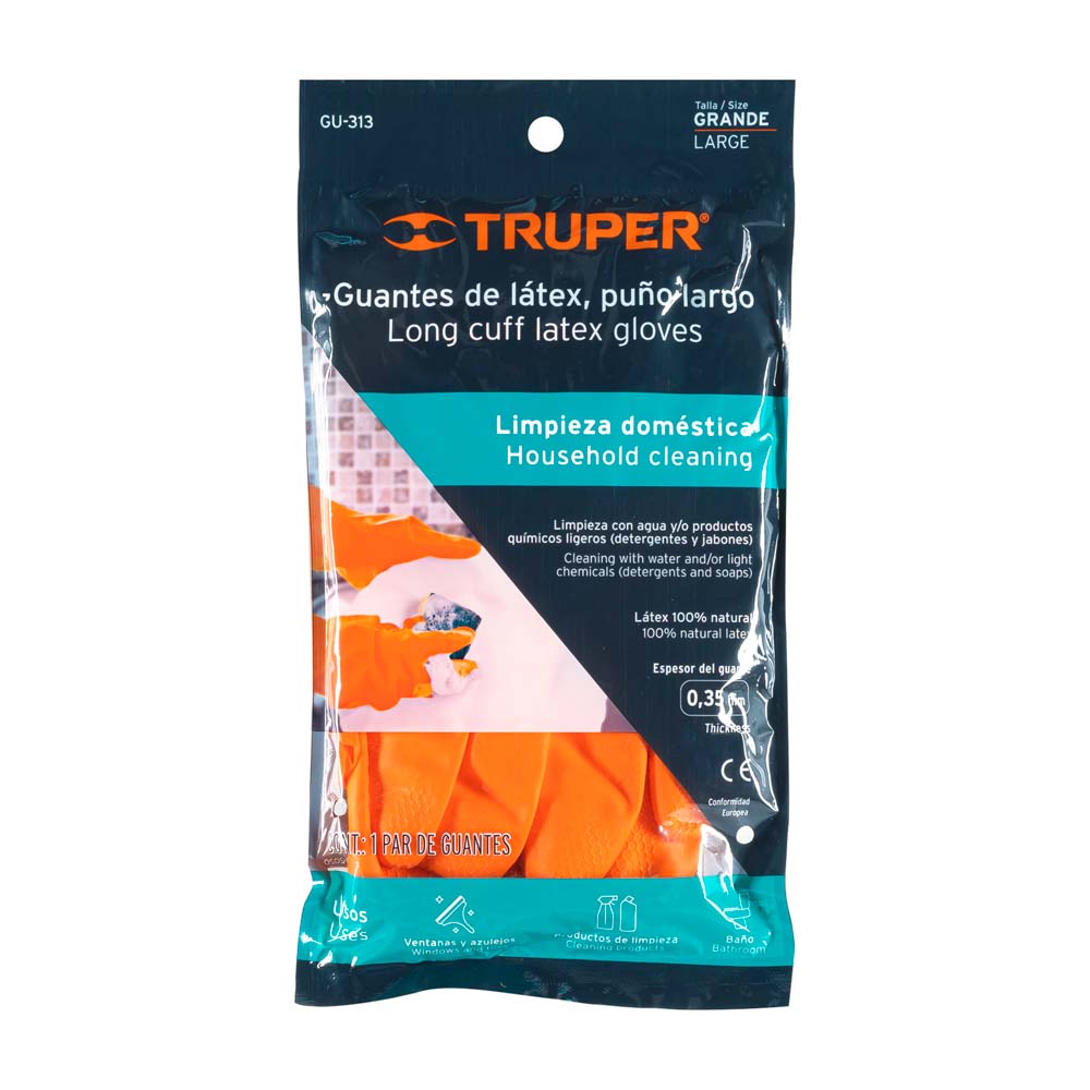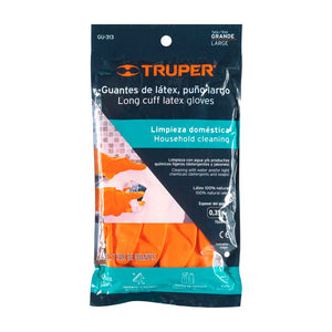 Guantes de látex, puño largo, ideal para limpieza doméstica. Están fabricadas de látex 100% natural con diseños antiderrapantes.
