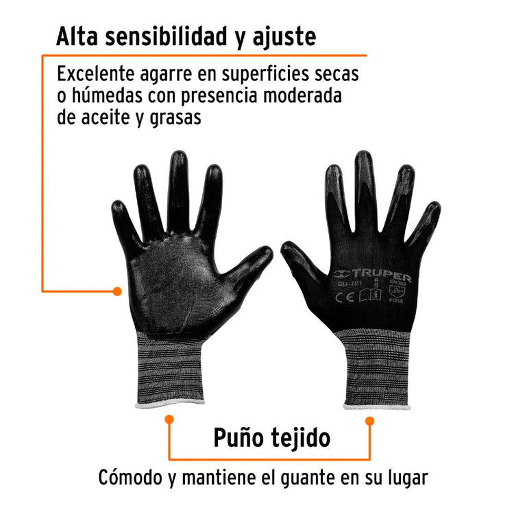 Guantes Truper de Nylon Recubiertos de Nitrilo Talla CH