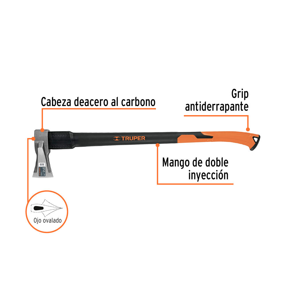 Hacha Truper para Rajar Madera 4.5 lb Mango Fibra de Vidrio 34"