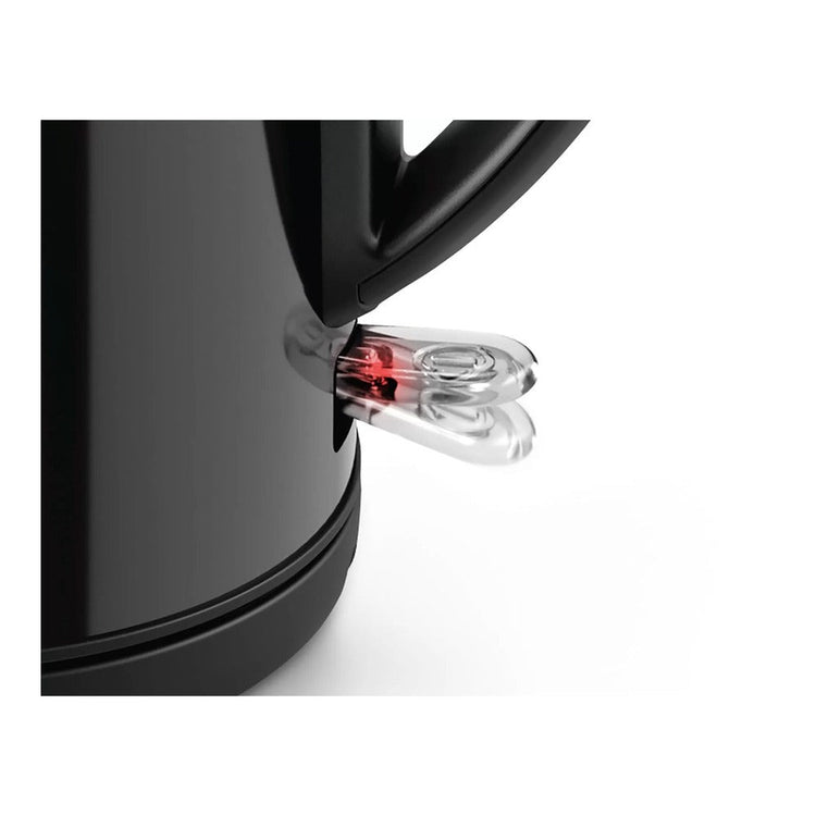 Este hervidor tiene una capacidad de 1.7 litros, una potencia de 2400 W y un cuerpo de acero inoxidable con un acabado negro pulido que le da un toque de elegancia y distinción. Además, tiene un indicador de taza que te ayuda a ahorrar energía y tiempo al hervir solo la cantidad que necesitas, un filtro extraíble y lavable que evita las impurezas y una base giratoria de 360 grados que facilita su uso. Su indicador de taza te ayuda a ahorrar energía y tiempo al hervir solo la cantidad que necesitas. Es manejable con una sola mano, con apertura de la tapa solo pulsando un botón.