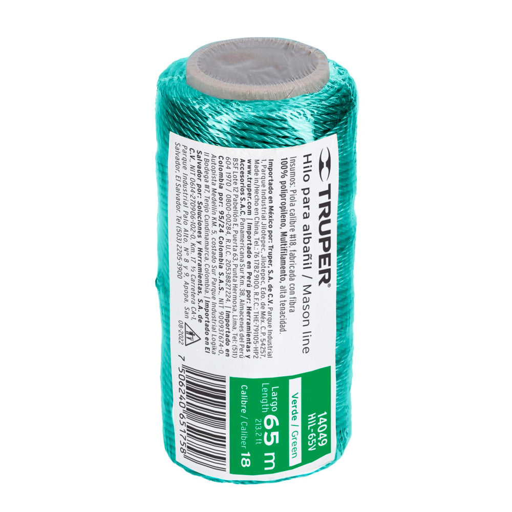 65 m de hilo para albañil, Truper. Este carrete tiene un hilo de nylon de primera calidad, que te permite hacer líneas rectas y exactas en cualquier construcción. Tiene un gatillo de liberación que evita que el hilo se atasque o se estire. Con este carrete, podrás realizar trabajos de albañilería, cerámica, madera y más, con la fiabilidad y el soporte que te ofrece Truper. No lo dudes más y adquiere el carrete con 65 m de hilo, Truper, el instrumento que te facilitará tus obras.