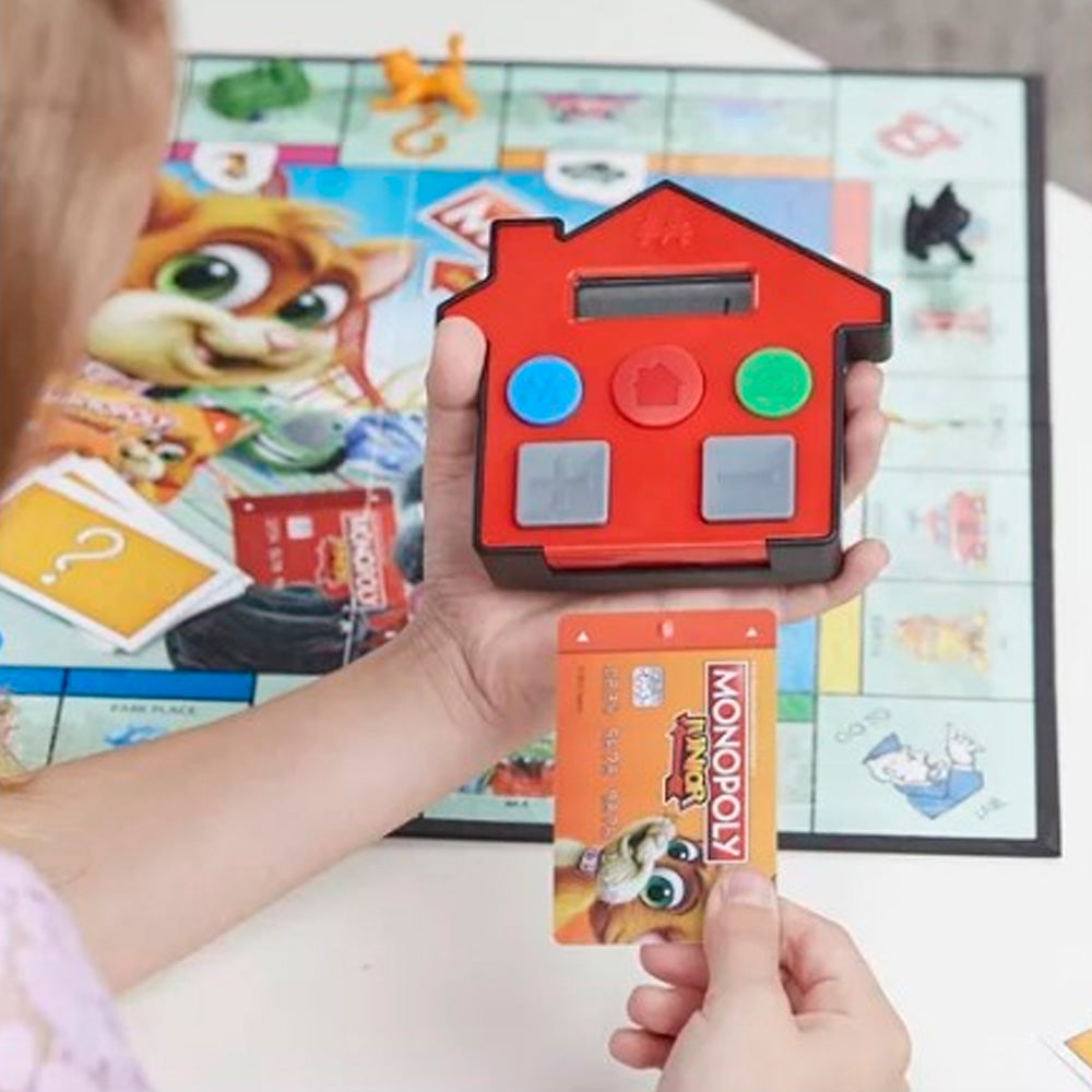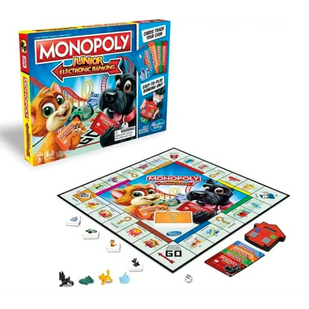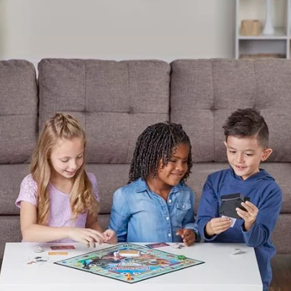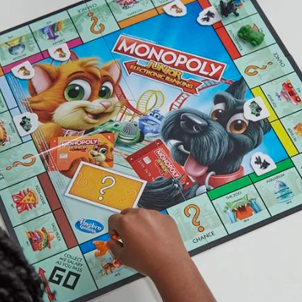 Una experiencia bancaria moderna para niños, con el diseño distintivo del tablero de juego Monopoly y los personajes