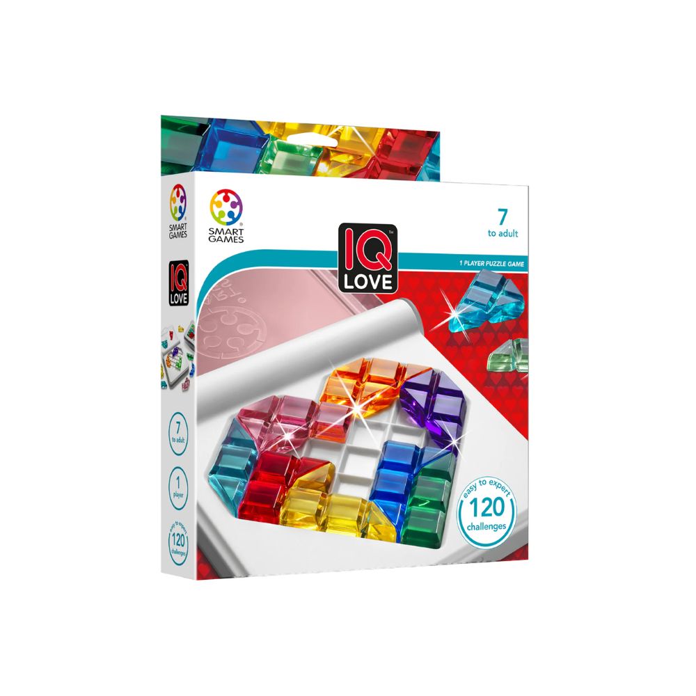 IQ Love es un juego de lógica y puzzle de la serie IQ de Smart Games, diseñado para jugadores individuales a partir de 6 años. Es un juego compacto y desafiante, perfecto para desarrollar habilidades de resolución de problemas, planificación y pensamiento lógico, mientras se resuelven una serie de enigmas con un tema simpático de parejas de animales.