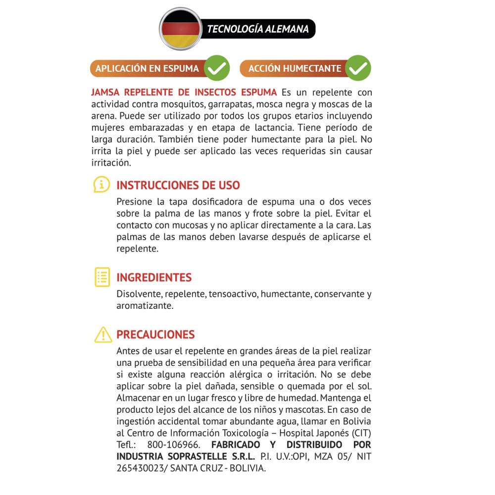 Repelente de Insectos Jamsa Citronela Espuma 125 ml