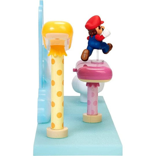Este juego te permite recrear clásicos momentos del famoso videojuego, guiando a la figura de Mario de 2.5 pulgadas a través de emocionantes obstáculos. El set incluye tres piezas ambientales interactivas con mecanismos funcionales, que permiten una experiencia de juego auténtica. Además, puedes personalizar la escena moviendo la nube intercambiable, creando tu propio mundo de Super Mario™.