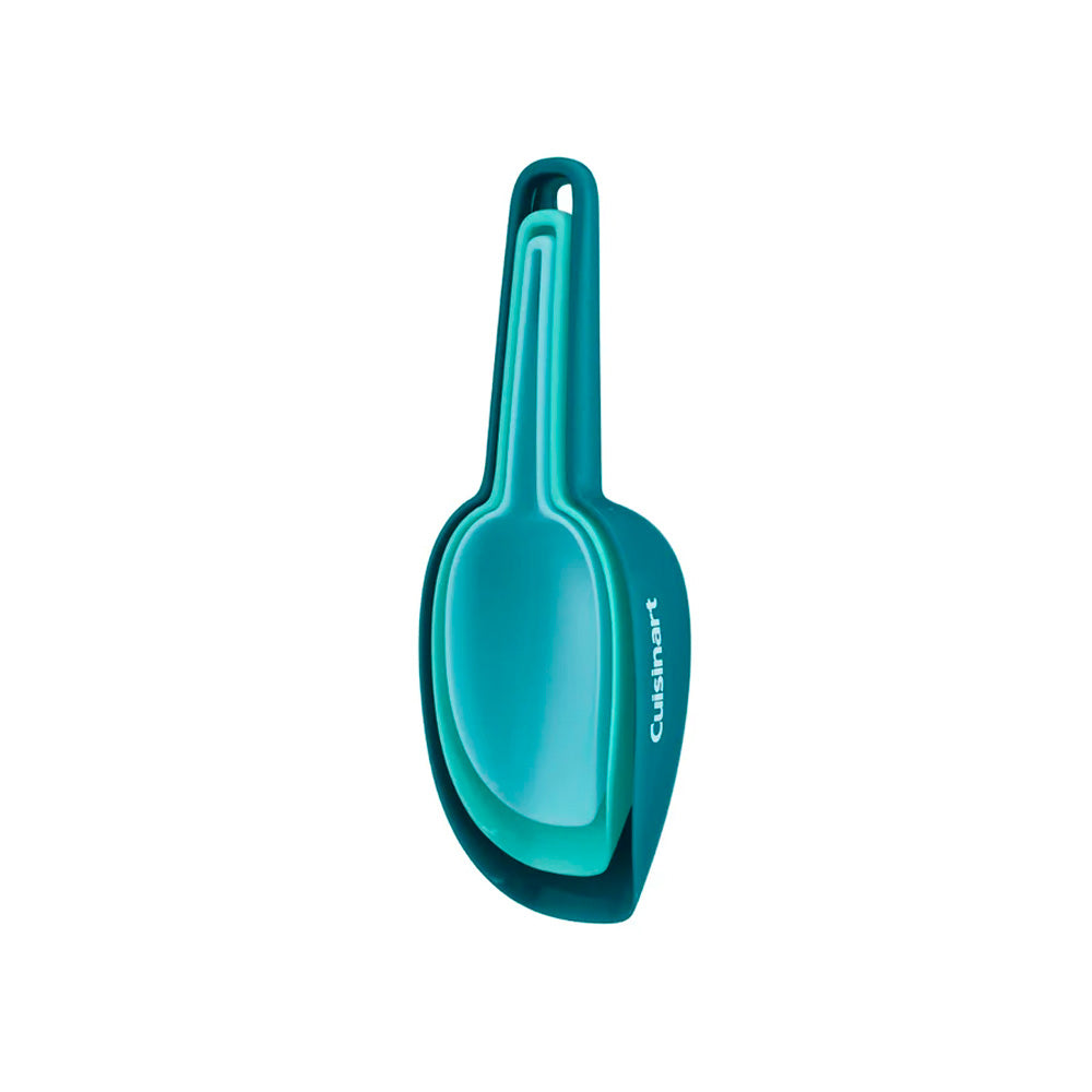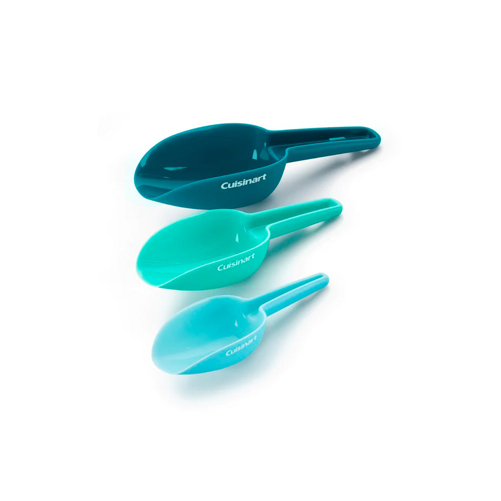 Juego de 3 Cucharas Cuisinart para Granos y Cereales, es el conjunto perfecto para sacar, medir y servir harina, azúcar, arroz, avena y más. Este juego incluye tres cucharas de diferentes tamaños y colores, todas con cabezales de plástico de alta calidad que resisten el calor y no rayan tus recipientes.