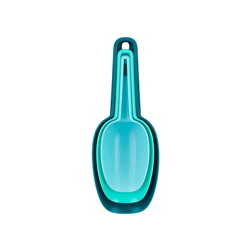 Juego de 3 palas ideales para sacar harina, azúcar, arroz y hielo. Las cucharas se bloquean juntas para un almacenamiento conveniente y fácil. Con este juego podrás preparar desde panes, tortas, galletas, hasta sopas, ensaladas, risottos y más. Además, son aptas para lavavajillas, lo que te facilitará la limpieza.