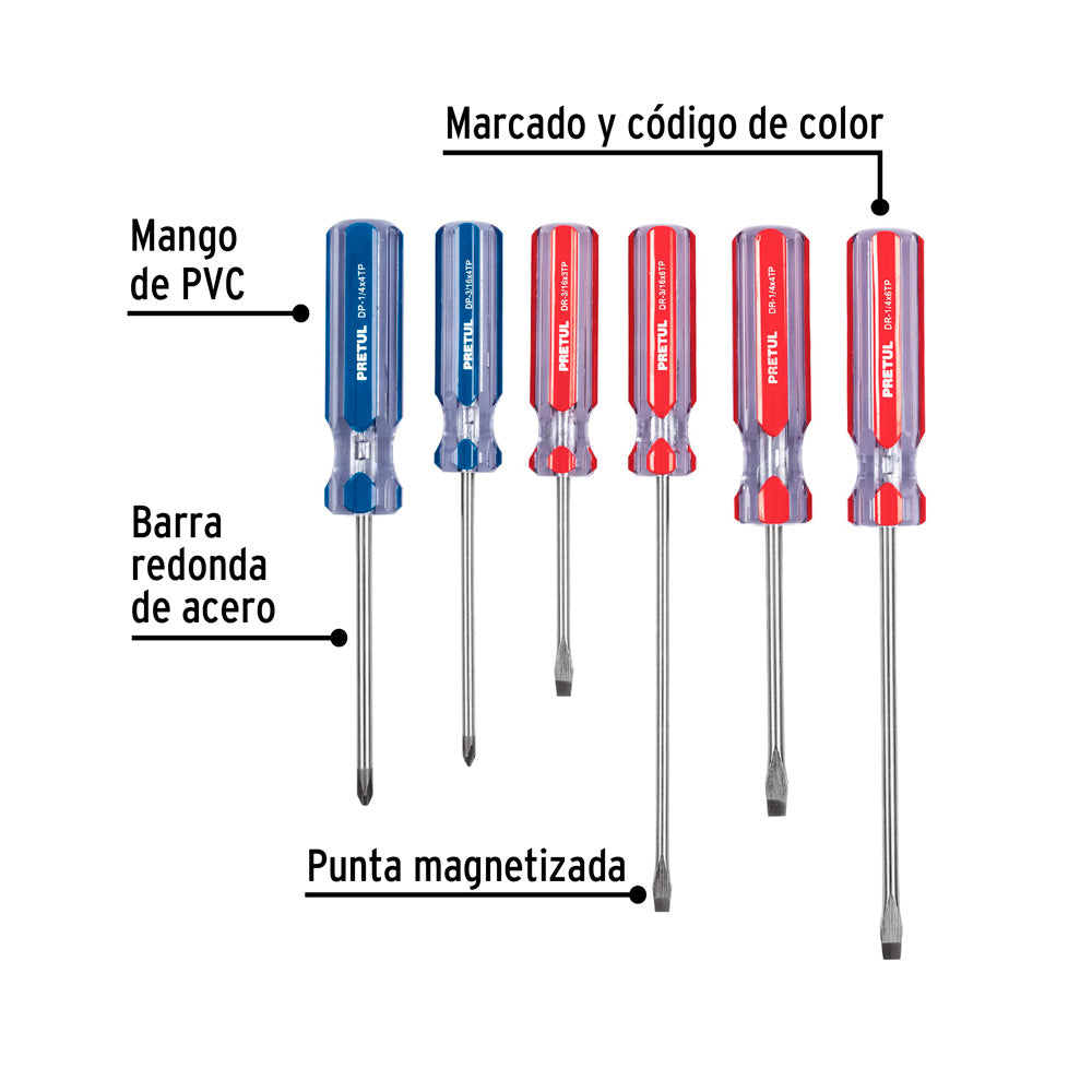 Juego de 6 Desarmadores Pretul Mango de PVC