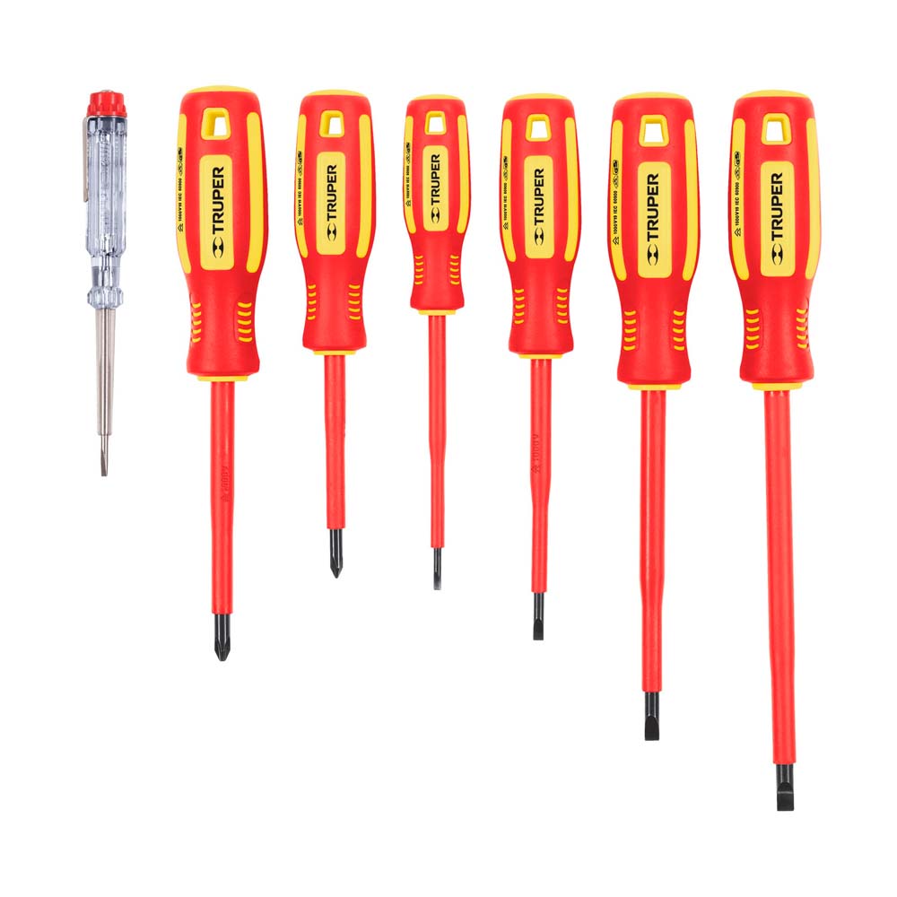 Juego de 6 Desarmadores Truper Dieléctricos y 1 Probador de Corriente