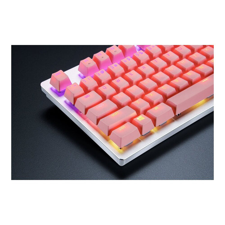 Durabilidad del doble tiro. Es hora de ponerse duro y asegurar sus llaves para la victoria con el conjunto de actualización de teclas Razer PBT. Diseñadas para soportar los juegos más intensos, estas teclas PBT de doble disparo no están aquí para ganar una batalla: están aquí para ganar la guerra. Más duro y duradero que el ABS o el PVC, el PBT es un termoplástico de alta calidad que le da a las teclas una apariencia y sensación resistentes y texturizadas que no se desgastan hasta obtener un acabado brillante. Fabricados con paredes extragruesas, están bien equipados para soportar un uso extremo y producir pulsaciones de teclas más satisfactorias gracias a su sólida construcción.