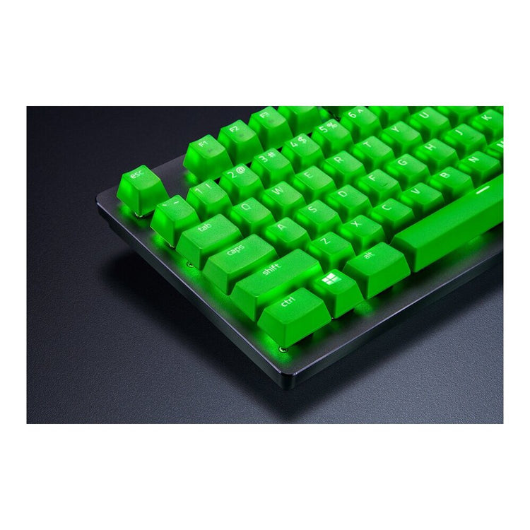 Durabilidad del doble tiro. Es hora de ponerse duro y asegurar sus llaves para la victoria con el conjunto de actualización de teclas Razer PBT. Diseñadas para soportar los juegos más intensos, estas teclas PBT de doble disparo no están aquí para ganar una batalla: están aquí para ganar la guerra. Más duro y duradero que el ABS o el PVC, el PBT es un termoplástico de alta calidad que le da a las teclas una apariencia y sensación resistentes y texturizadas que no se desgastan hasta obtener un acabado brillante. Fabricados con paredes extragruesas, están bien equipados para soportar un uso extremo y producir pulsaciones de teclas más satisfactorias gracias a su sólida construcción.