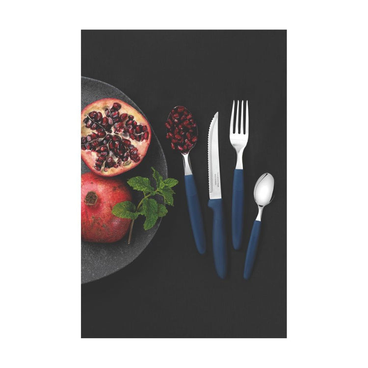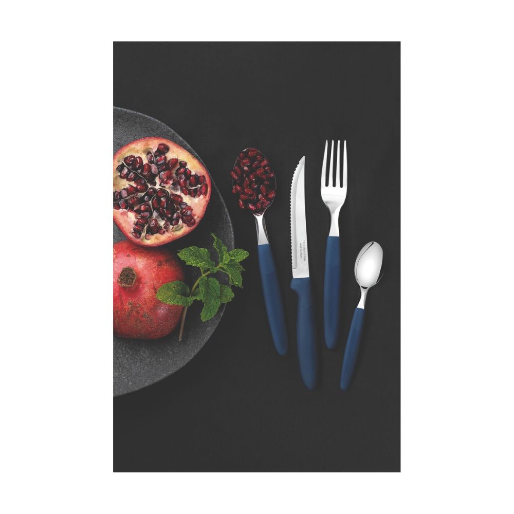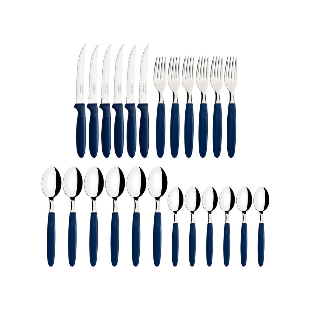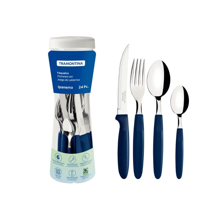 Para los que les gusta una mesa linda y colorida, el Juego de Cubiertos Tramontina Ipanema con Láminas de Acero Inoxidable y Mangos de Polipropileno Azul con Pote Plástico 24 Piezas es la elección perfecta. Los cubiertos se fabrican con láminas de acero inoxidable y mangos de polipropileno, ambas características que garantizan alta resistencia y durabilidad, además de dejar una mesa mucho más bonita debido al color azul. Es muy práctico, fácil de limpiar y viene con un pote plástico ideal para guardar tus piezas o alimentos en tu cocina. Tus comidas quedarán repletas de alegría con este juego de cubiertos lleno de color y estilo.