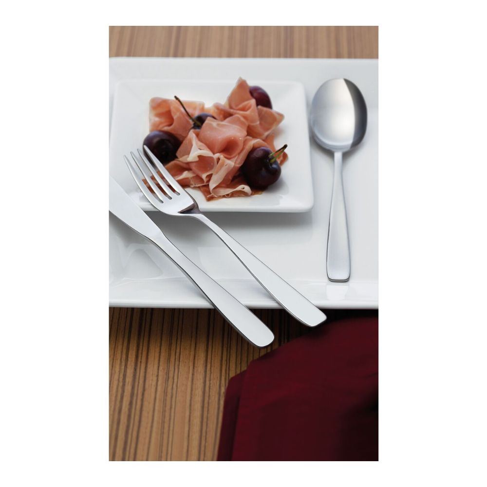Nada como piezas útiles y sofisticadas para la comodidad de nuestra cocina. El juego de cubiertos con cuchillos para asado de acero inoxidable de 24 piezas Tramontina de la línea Cosmos es ideal para las tareas diarias. Los 24 cubiertos están hechos totalmente de acero inoxidable con una elegante terminación brillante. Las cucharas con cuenca en formato simétrico, poseen bordes cuidadosamente redondeados. Los tenedores tienen dientes pulidos en la parte interna, con formato apropiado para la boca y bordes redondeados, proporcionando más comodidad en el uso. Los cuchillos totalmente templados, garantizan mayor durabilidad al filo de corte y mayor resistencia a la corrosión. Por su templabilidad, no arañan la porcelana. ¡Son piezas completas y elegantes para su cocina!