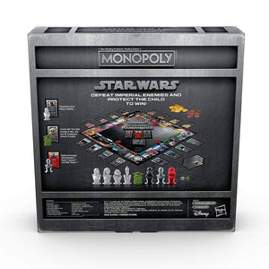 Imagina estar en una peligrosa galaxia donde los Enemigos Imperiales amenazan la integridad de Grogu. En el juego de mesa Monopoly: Star Wars The Mandalorian, inspirado en la segunda temporada de la serie, los jugadores pueden jugar como el Mandaloriano, Bo-Katan Kryze, Ahsoka Tano o Boba Fett. Conseguir el token de Grogu permite a los jugadores utilizar sus poderes especiales, y la habilidad especial de su personaje cuando el peligro acecha. Compra escondites, gana batallas y créditos imperiales. El jugador con más créditos imperiales será el ganador, pero ¡cuidado! Si un enemigo imperial atrapa a Grogu, ¡la partida se acaba para todos!